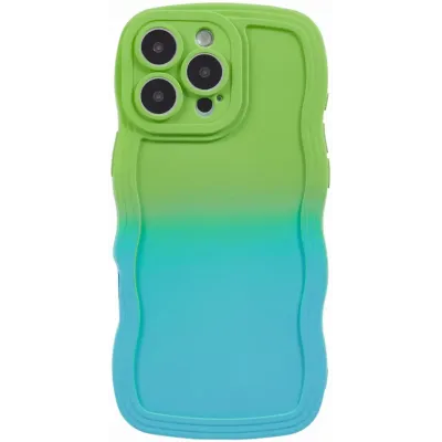 Coque arrière en silicone Phonesta Wavy Gradient pour Apple iPhone 16 Pro Max - Vert/Bleu