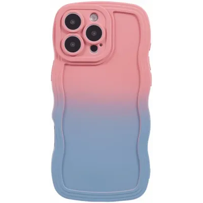 Coque arrière en silicone Phonesta Wavy Gradient pour Apple iPhone 16 Pro - Rose/Bleu