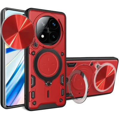 Coque arrière Phonesta IronLock anneau et MagSafe pour Xiaomi Redmi Note 14 Pro 4G/5G/14 Pro Plus / Xiaomi Poco X7 - Rouge