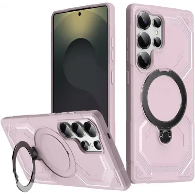 Coque arrière Phonesta IronLock anneau et MagSafe pour Samsung Galaxy S25 Ultra - Rose