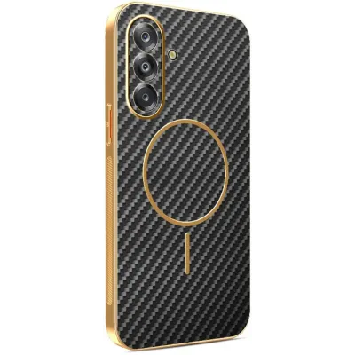 L’un des points forts de cette coque est son puissant anneau magnétique MagSafe doré, qui permet d'utiliser facilement les accessoires MagSafe tels que les chargeurs sans fil ou les supports. La texture en fibre de carbone confère un style moderne et évite les traces de doigts, gardant votre Samsung Galaxy A17/A26 toujours propre et élégant.