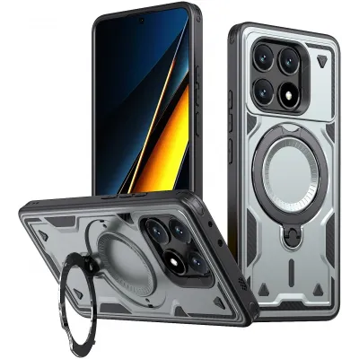 Coque arrière Phonesta MagLock Armor anneau et MagSafe pour Xiaomi Poco X6 Pro - Gris