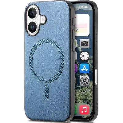 Coque arrière Phonesta Retro Vegan Leather MagSafe pour Apple iPhone 16 Plus - Bleu