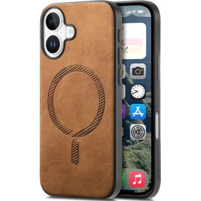 Coque arrière Phonesta Retro Vegan Leather MagSafe pour Apple iPhone 16 Plus - Marron