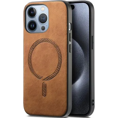• Coque arrière Phonesta Retro Vegan Leather MagSafe pour Apple iPhone 16 Pro - Marron
