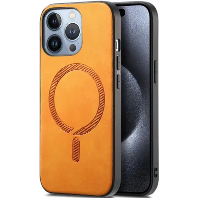 • Coque arrière Phonesta Retro Vegan Leather MagSafe pour Apple iPhone 16 Pro Max - Orange