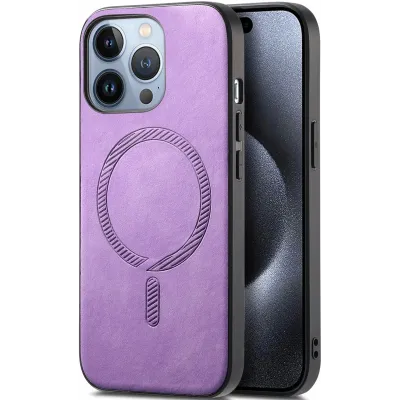 • Coque arrière Phonesta Retro Vegan Leather MagSafe pour Apple iPhone 16 Pro Max - Violet
