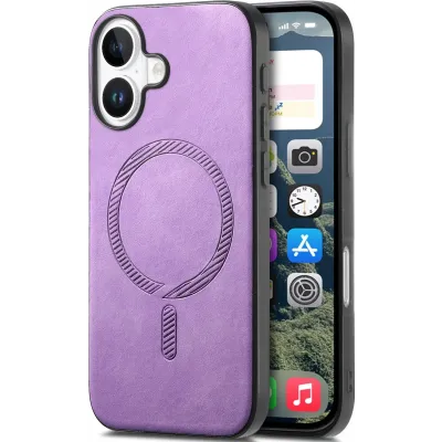 Coque arrière Phonesta Retro Vegan Leather MagSafe pour Apple iPhone 16 - Violet