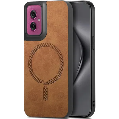 Coque arrière Phonesta Retro Vegan Leather MagSafe pour Motorola Moto G55 - Marron