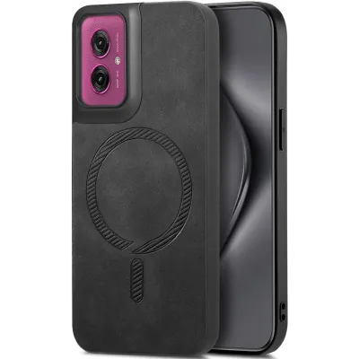Coque arrière Phonesta Retro Vegan Leather MagSafe pour Motorola Moto G55 - Noir