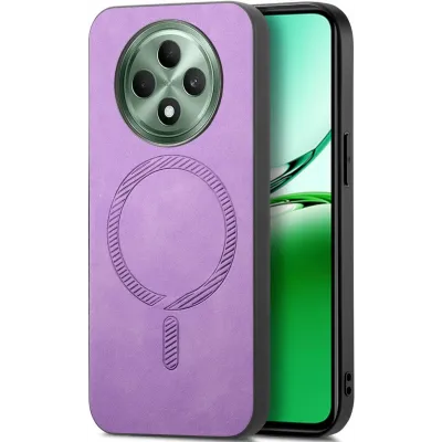• Coque arrière Phonesta Retro Vegan Leather MagSafe pour Oppo Reno12 F/Reno12 FS - Violet