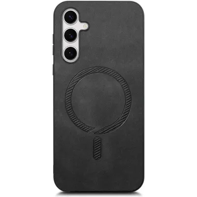 Coque arrière Phonesta Retro Vegan Leather MagSafe pour Samsung Galaxy S25/S24 - Noir