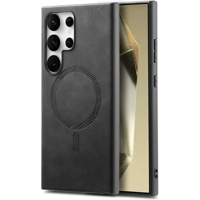 Coque arrière Phonesta Retro Vegan Leather MagSafe pour Samsung Galaxy S25 Ultra - Noir