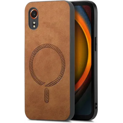 Coque arrière Phonesta Retro Vegan Leather MagSafe pour Samsung Galaxy Xcover 7 - Marron