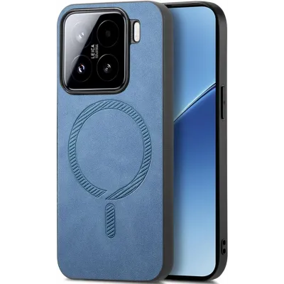 Coque arrière Phonesta Retro Vegan Leather MagSafe pour Xiaomi 15 - Bleu