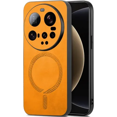 Coques de téléphoneCoques pour XiaomiCoques Xiaomi 15 UltraCoque arrière Phonesta Retro Vegan Leather MagSafe pour Xiaomi 15 Ultra - Orange