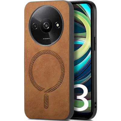 Coque arrière Phonesta Retro Vegan Leather MagSafe pour Xiaomi Redmi A3 - Marron