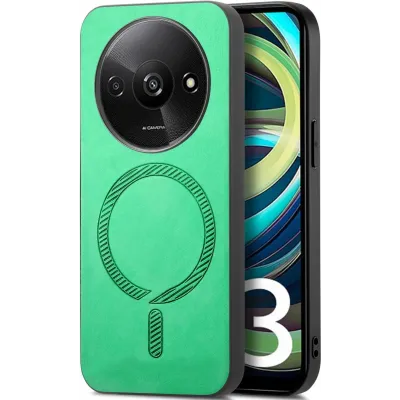 Coque arrière Phonesta Retro Vegan Leather MagSafe pour Xiaomi Redmi A3 - Vert