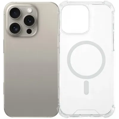• Coque arrière Phonesta Shockproof MagSafe pour Apple iPhone 16 Pro - Transparent