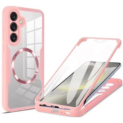 Coques de téléphoneCoques pour Samsung GalaxyCoques Samsung Galaxy S25Coque intégrale Phonesta Slim Protect 360 protecteur d'écran et MagSafe pour Samsung Galaxy S25/S24 - Rose