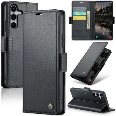 • Coque portefeuille CASEME Litchi Texture pour Samsung Galaxy S25 Plus - Noir