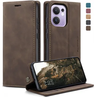 • Coque portefeuille CASEME Retro Texture pour Oppo Reno13 F 4G/5G / Reno13 FS 5G - Marron foncé