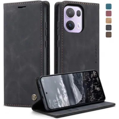 Coque portefeuille CASEME Retro Texture pour Oppo Reno13 Pro - Noir