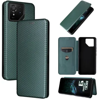 Coque portefeuille Phonesta Carbon Fiber Skin pour Asus ROG Phone 9/9 Pro - Vert foncé