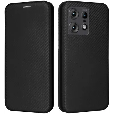 Coque portefeuille Phonesta Carbon Fiber Skin pour Motorola Edge 50 Pro - Noir