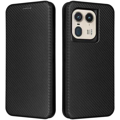 Coque portefeuille Phonesta Carbon Fiber Skin pour Motorola Edge 50 Ultra - Noir