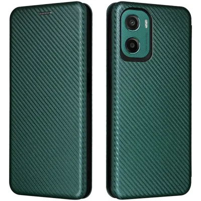 • Coque portefeuille Phonesta Carbon Fiber Skin pour Motorola Moto G05 / Moto E15 - Vert foncé