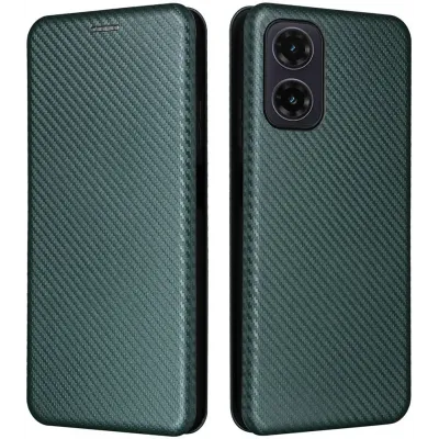 • Coque portefeuille Phonesta Carbon Fiber Skin pour Motorola Moto G35 - Vert foncé