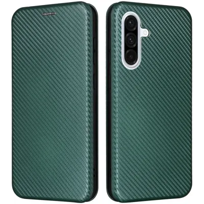 Coque portefeuille Phonesta Carbon Fiber Skin pour Samsung Galaxy A56 - Vert foncé