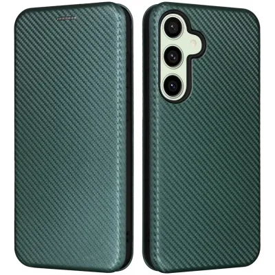 Coque portefeuille Phonesta Carbon Fiber Skin pour Samsung Galaxy S24 FE - Vert foncé