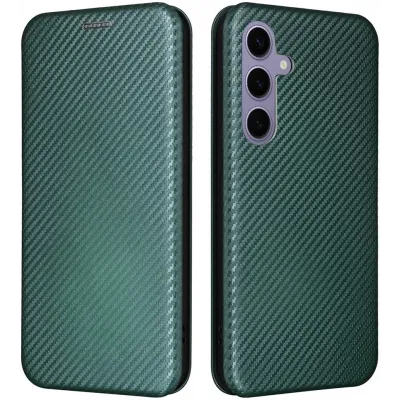 Coque portefeuille Phonesta Carbon Fiber Skin pour Samsung Galaxy S25 - Vert foncé