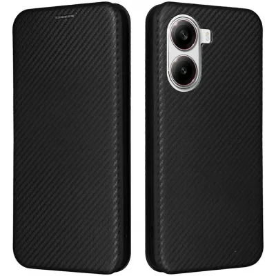 Coque portefeuille Phonesta Carbon Fiber Skin pour Xiaomi Poco X7 Pro - Noir