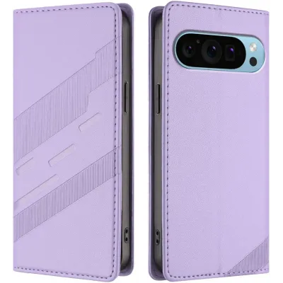 Coque portefeuille Phonesta Embossed Lines pour Google Pixel 9 / 9 Pro - Violet