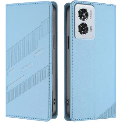 Coque portefeuille Phonesta Embossed Lines pour Motorola Edge 50 Fusion - Bleu clair