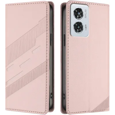 Coque portefeuille Phonesta Embossed Lines pour Motorola Edge 50 Fusion - Rose