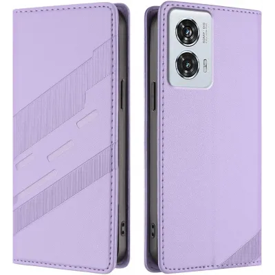 • Coque portefeuille Phonesta Embossed Lines pour Motorola Edge 50 Fusion - Violet