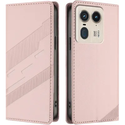 Coque portefeuille Phonesta Embossed Lines pour Motorola Edge 50 Ultra - Rose