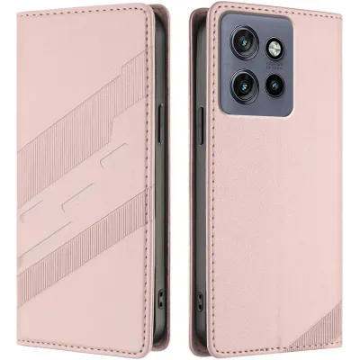 • Coque portefeuille Phonesta Embossed Lines pour Motorola Edge 60 Neo/Edge 50 Neo / ThinkPhone 25 - Rose