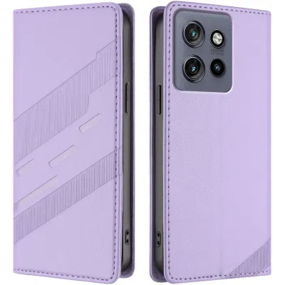 • Coque portefeuille Phonesta Embossed Lines pour Motorola Edge 60 Neo/Edge 50 Neo / ThinkPhone 25 - Violet