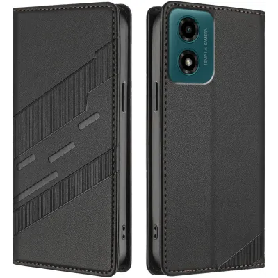 Coques de téléphoneCoques pour MotorolaCoques Motorola Moto E14Coque portefeuille Phonesta Embossed Lines pour Motorola Moto G04 / G04s / G24 / G24 Power / E14 - Noir