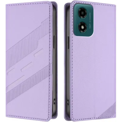 Coque portefeuille Phonesta Embossed Lines pour Motorola Moto G04 / G04s / G24 / G24 Power / E14 - Violet