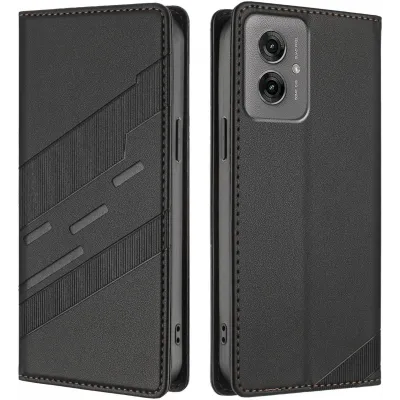 Coques de téléphoneCoques pour MotorolaCoques Motorola Moto G55Coque portefeuille Phonesta Embossed Lines pour Motorola Moto G55 - Noir