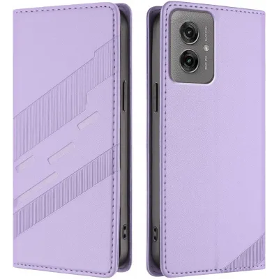 Coque portefeuille Phonesta Embossed Lines pour Motorola Moto G55 - Violet