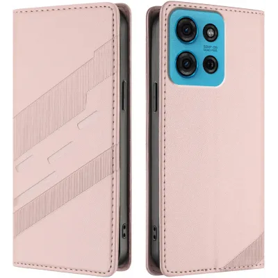 Coque portefeuille Phonesta Embossed Lines pour Motorola Moto G75 - Rose