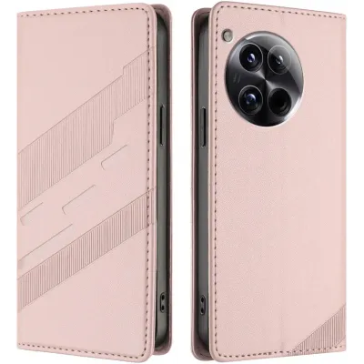 Coque portefeuille Phonesta Embossed Lines pour OnePlus 12 - Rose