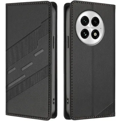 Coque portefeuille Phonesta Embossed Lines pour OnePlus 13 - Noir